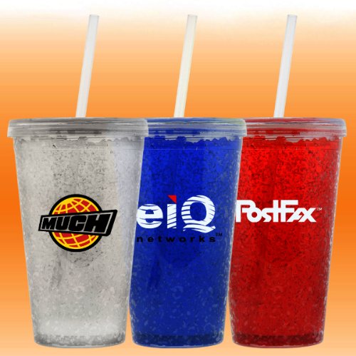 #Freeze the colorful gel contained within the double insulated walls of this 17 oz. mug to keep beverages cool. The gel inside the lining of this mug acts to insulate and cool beverages. FOB Texas. These products arrive in 3 business days when shipping FEDEX Ground to 95% of USA. Imprint Size: 2 1/2"w x 2 1/2"h.17 oz.
