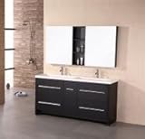 Design Element DEC079A Perfecta 63-Inch Espresso Finish Double Sink Vanity SetThe 63-Inch Perfecta Vanity is uniquely designed and constructed of solid oak wood. The integrated white acrylic drop in sinks tailored edge brings a crisp clean contemporary look to any bathroom. The rectangular double sinks unique rolling curved basin, beautifully contrast with the sharp lines of the espresso cabinetry. This sophisticated design includes four large drawers satin nickel finish hardware. Two mirrored soft closing medicine cabinet cabinets with joining espresso shelves provide ample storage. The Perfecta Pick Vanity is designed as a center piece to awe-inspire the eye without sacrificing quality, functionality or durability.