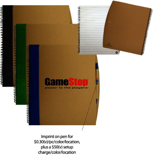 The Carlton Notebook (100 Pack)?This journal comes with an extra heavy duty cardboard cover and 70 pages of recycled lined paper. The colorful stripe is made from recyclable non woven material. A blank black ink pen made from recycled paper is also included in this notebook. Imprint Size: (1 color - screen printed) 5"w x 5"h Imprint Area: (2 or more colors - pad printed) 3 1/2"w x 3 1/2"h.9"w x 10 7/8"h.