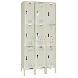 Lyon Locker Three Tier 12x15x24 9 Door Ready To Assemble Putty , Recessed Handle .