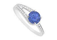 Sapphire and Diamond Engagement Ring : 14K White Gold - 0.75 CT TGW Size 8.5