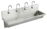 Are you looking for the best review for Elkay EWMA9620SACC Four Station Sensor Faucet Package Commercial? Read customer review, features, specifications, description, check prices update and more satisfying for Elkay EWMA9620SACC Four Station Sensor Faucet Package Commercial product reviews! #14 gauge, type 304 (18-8), stainless steel multiple station wash sink with 1/4' (6mm) radius coved corners. 1-1/2' (38mm) wide inward sloping top channel rims, with 2' (51mm) flat apron. Full length 10' (254mm) high backsplash. Exposed surfaces are hand blended to a uniform lustrous satin finish. Furnished with wall hangers and stainless steel support brackets. FAUCET: LK722AC Sensor-operated, non-mixing (tempered water), backsplash-mounted gooseneck faucet with adjustable sensor eyes. A continuous beam is emitted from sensor. The sensor