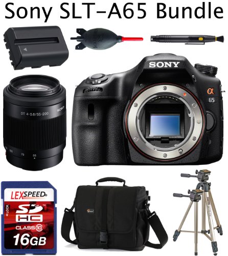 Sony SLT-A65V (Body) w/ Sony SAL-55200-2 55-200mm f/4-5.6 DT AF Zoom Lens + 16GB Card + Lowepro Bag + Battery + Tripod
