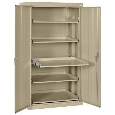 #ET52362466-04LL Color: Tropic Sand Features: -Convenient pull-out shelves on full extension ball-bearing slides.-Four leg levelers to keep cabinet level on uneven surface.-Three point locking handle/keys secure the contents. Color/Finish: -Powder coat finish in 14 colors.